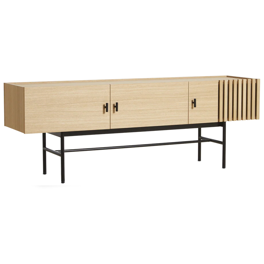 שידת Array שעוצב על ידי הסטודיו הדני לעיצוב Says Who למותג הדני WOUD, משלבת מסגרת מתכת דקה עם ארונית מצופה בעץ אלון. ההשראה ללוחות האנכיים בדלתות מגיעה מארכיטקטורה מודרנית שיוצרת אפקט ויזואלי מרשים על ידי משחקי אור וצל בעומק הלוחות. מאחורי הדלתות תמצאו שלושה תאים מרווחים לאחסון.