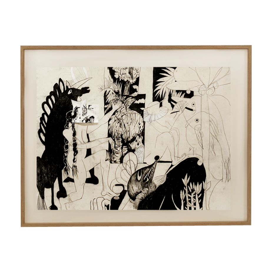 רישום בעיפרון שיצרה האמנית לירון כהן לוין, שנעשה בפעולת רישום אינטנסיבית ופרועה. רישומיה מתארים מציאות עכשווית ומפורקת ועיקר הפרקטיקה האמנותית שלה הוא תוצר של התבוננות, הצפה ואז ליקוט, המונע ממקום רגשי וחוויה חזותית ושחי במרחב שבין מציאות להמצאה.