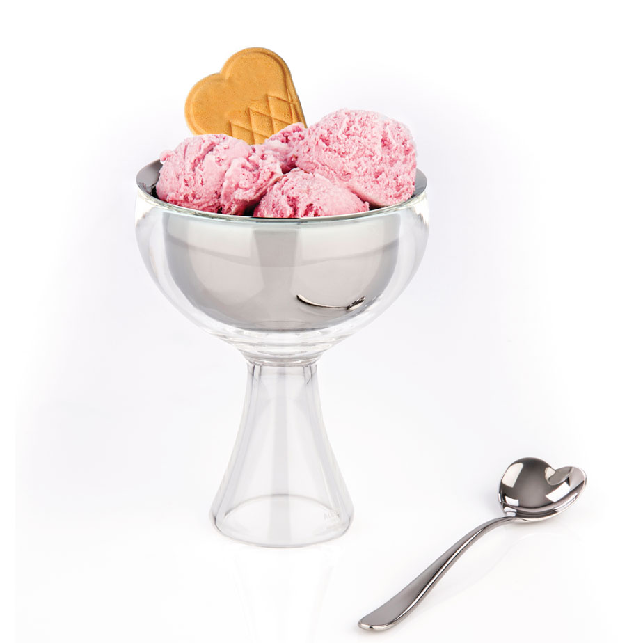 קערת הגלידה ליחיד או לזוג, עם השם המבטיח Big Love מבית ALESSI, עוצבה על ידי המעצבת האיטלקייה Miriam Mirri, שידועה בסגנון הפופ-ארט המשמח שלה. הקערה הפנימית עשויה נירוסטה ומשולבת עם מעטפת ורגל משרף תרמופלסטי. היא מגיעה עם כפית ייחודית בצורת לב, שמיועדת לחלוקה ומוסיפה רומנטיקה לכל קינוח.