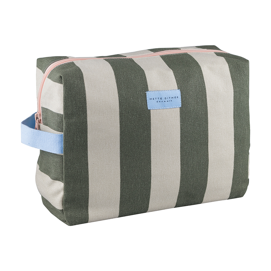 תיק רחצה מסדרת Bring-it של המותג הדני METTE DITMER מציע פתרון נוח, מרווח ומעוצב לאחסון מוצרי טיפוח בבית או בדרכים. הוא עשוי קנבס כותנה עם הדפס גיאומטרי, ומשלב צבעים הרמוניים עם ניגודים עדינים בפרטים כמו הרוכסן, התווית והרצועה. פנים התיק מרופד בבד כהה וכולל ארבעה כיסים פנימיים עם ציפוי דוחה לחות ולכלוך. הצורה המרווחת מתאימה גם לבקבוקים גבוהים או פריטים גדולים, והפתח הרחב מאפשר גישה נוחה ומבט מלא על התכולה.
