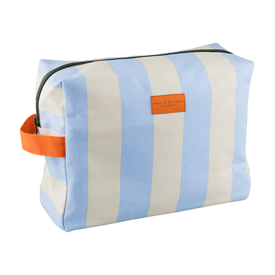 תיק רחצה מסדרת Bring-it של המותג הדני METTE DITMER מציע פתרון נוח, מרווח ומעוצב לאחסון מוצרי טיפוח בבית או בדרכים. הוא עשוי קנבס כותנה עם הדפס גיאומטרי, ומשלב צבעים הרמוניים עם ניגודים עדינים בפרטים כמו הרוכסן, התווית והרצועה. פנים התיק מרופד בבד כהה וכולל ארבעה כיסים פנימיים עם ציפוי דוחה לחות ולכלוך. הצורה המרווחת מתאימה גם לבקבוקים גבוהים או פריטים גדולים, והפתח הרחב מאפשר גישה נוחה ומבט מלא על התכולה.