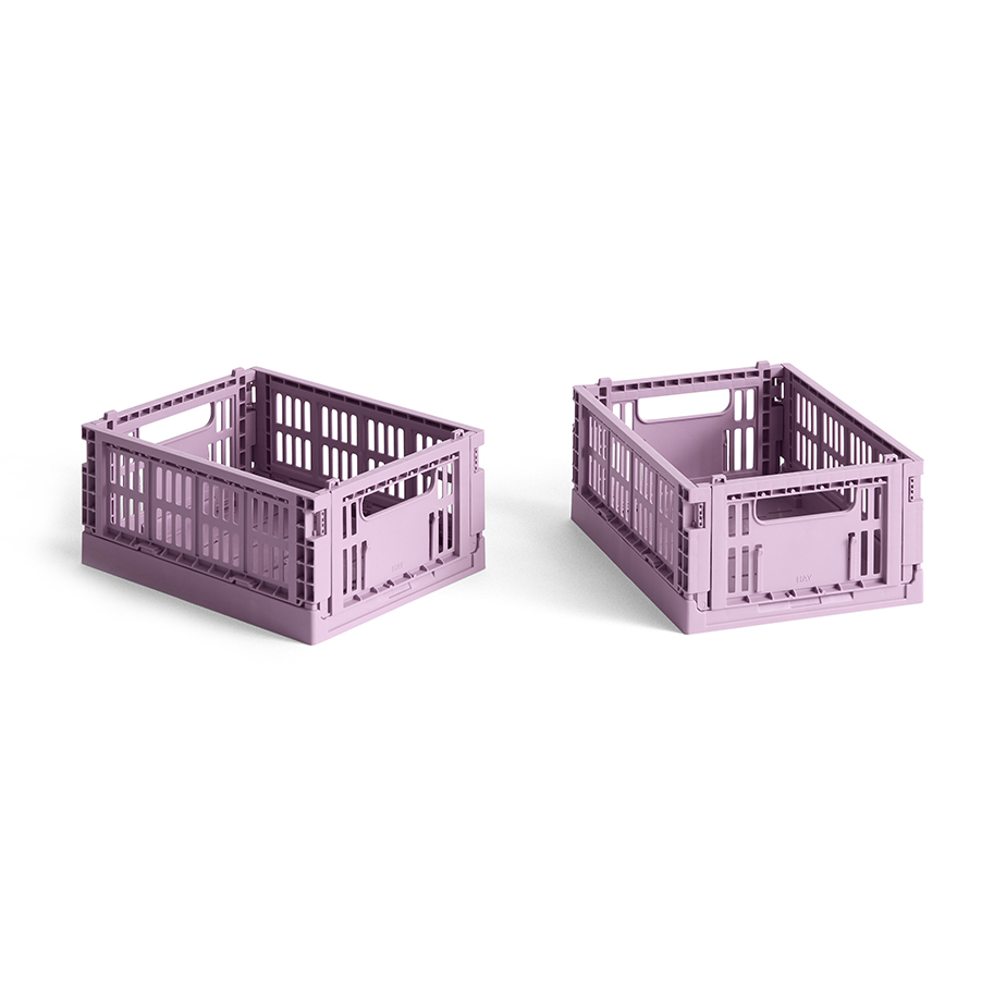 זוג ארגזים קטנים מסדרת קופסאות האחסון הצבעוניות COLOUR CRATE של המותג הדני HAY. הארגזים עשויים מפלסטיק ממוחזר והם פונקציונליים ונוחים לארגון ולסידור המטבח, חדר הרחצה, פינת העבודה או כל חדר בבית.
