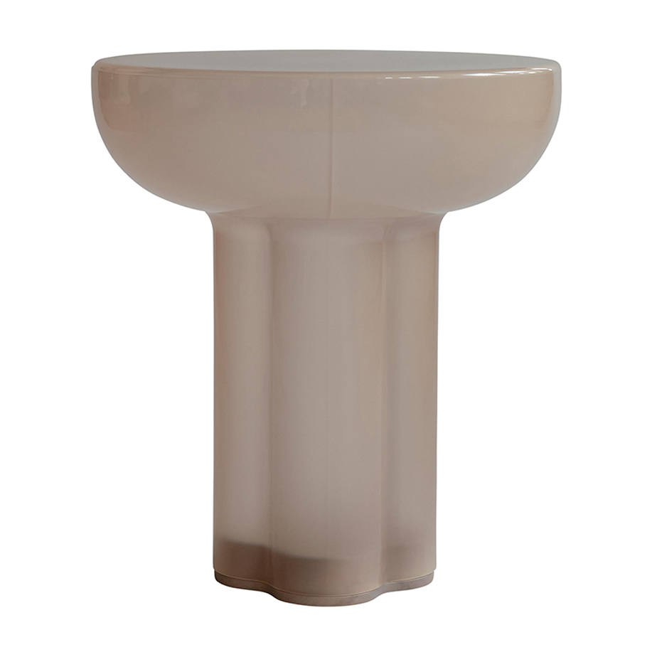 קולקציית Crown, בעיצובם של Kristian Sofus Hansen ו־Tommy Hyldahl עבור המותג הדני 101COPENHAGEN, שואבת השראה מהארכיטקטורה הברוטליסטית. השולחנות מיוצרים בטכניקת ניפוח זכוכית לתוך תבנית כיחידה אחת שלמה, ומורכבים ממשטח עגול הנתמך בארבע רגליים גליליות – איזון מדויק בין מבנה לפשטות צורנית. המבנה יושב על בסיס עץ עם חיזוק מתכתי, שמעניק יציבות ועמידות. הבדלים קלים ובועות אוויר עדינות הם חלק מתהליך הייצור הידני, שהופכים כל שולחן לפריט ייחודי וחד־פעמי.