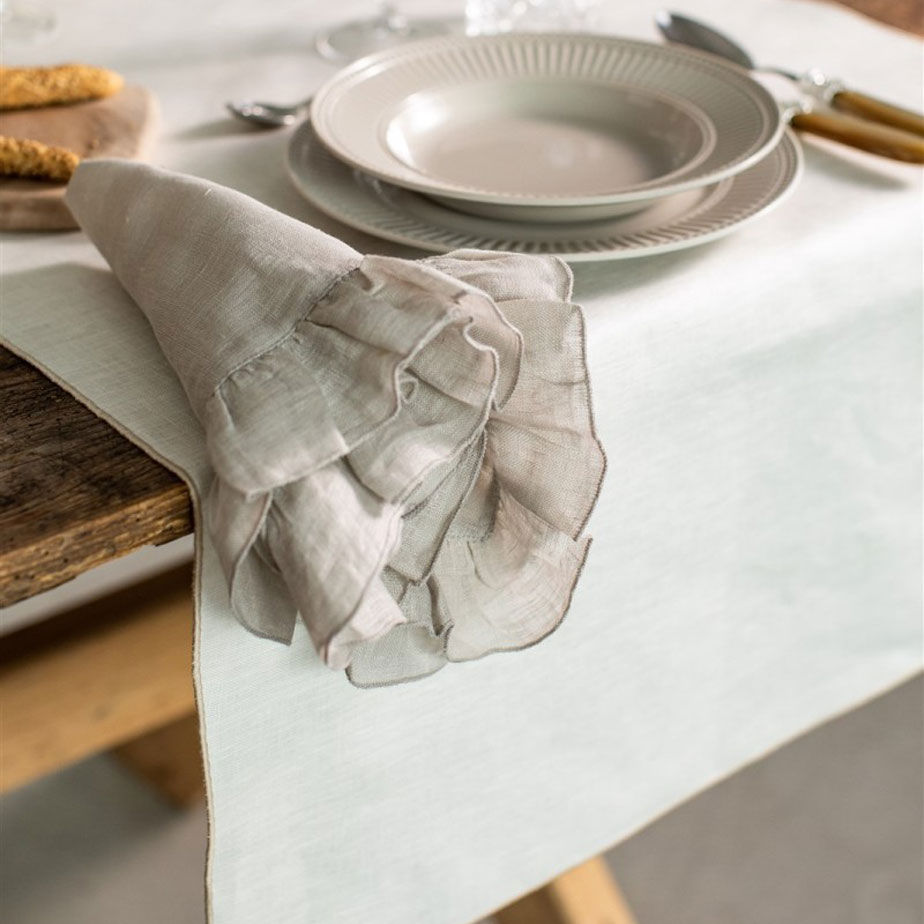 ראנר מקולקציית Filo של המותג האיטלקי BORGO DELLE TOVAGLIE, עשויה פשתן טבעי בגימור שטוף, עם תפר רקום בגוון קונטרסטי שמוסיף מסגרת עדינה ומדויקת. כל פריט נתפר באיטליה בעבודת יד, ומשלב בין אסתטיקה טבעית לאלגנטיות שקטה. אפשר לשלב עם מפות ומפיות תואמות או להרכיב קומפוזיציה אישית מתוך המגוון הרחב של הקולקציה.