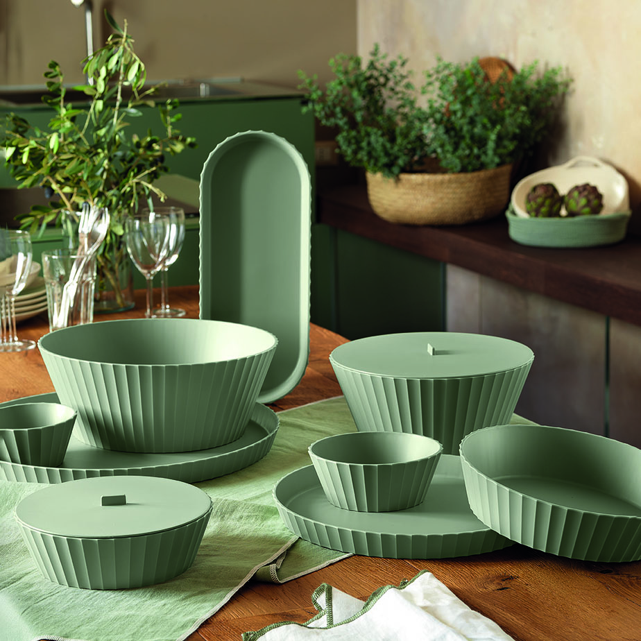 קערה רב-תכליתית מהקולקציה של המעצב האיטלקי Raffaello Galiotto למותג BLIM, שמביאה את האסטתיקה של העמודים היוונים העתיקים לשולחן האוכל המודרני. הקערה עשויה מפוליפרופילן קל ועמיד.