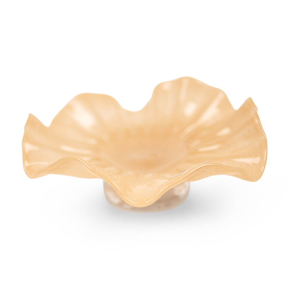 קערת Loa של המותג השוודי OLSSON & JENSEN מיוצרת בטכניקה מסורתית של ניפוח זכוכית, כך שכל פריט הוא ייחודי. חלקה העליון מעוצב בקיפולים זוויתיים הנפתחים כלפי חוץ, ויוצרים מראה פיסולי שמזכיר פרח פתוח או תנועה שקפאה ברגע דרמטי. קערה מרשימה שמתאימה להגשה, לאחסון תכשיטים או חפצים קטנים, וגם כפריט דקורטיבי בפני עצמו.