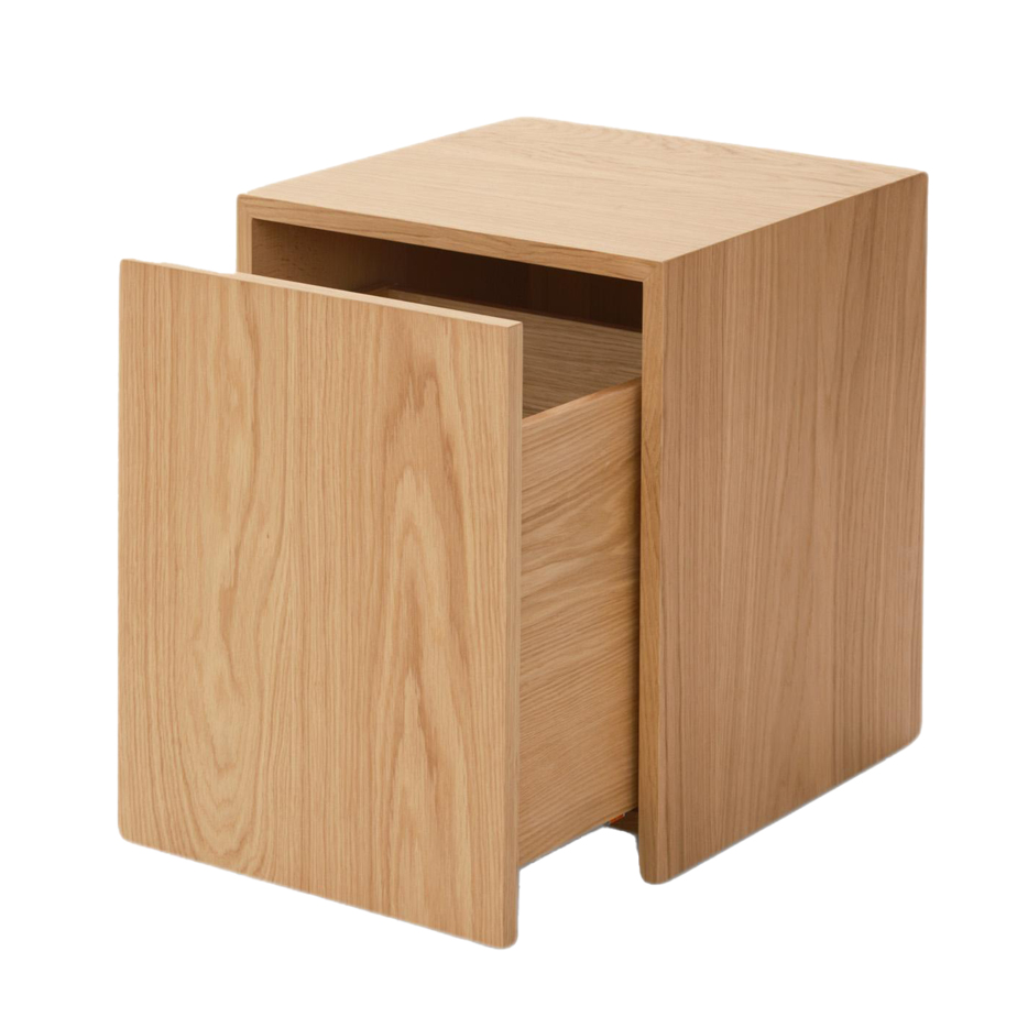 שולחן הצד Mass מבית NEW WORKS משלב עיצוב מוקפד עם שימושיות חכמה. עשוי פורניר אלון בגוון טבעי, הוא כולל מגירה אינטגרלית נסתרת לאחסון. משטח אידיאלי להנחה של פריטים יומיומיים ליד מיטה או כשולחן צד בסלון.