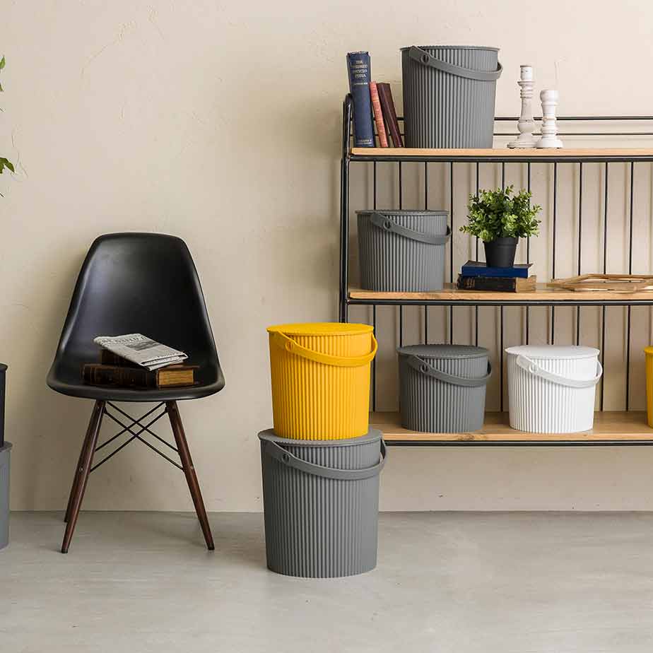 דלי פלסטיק מעוצב עם מכסה וידית. הדליים של HACHIMAN מתאימים לסגנונות עיצוב רבים ולמגוון שימושים בבית או בחוץ לנוי, אחסון ושימוש יומיומי. המותג היפני HACHIMAN נוסד ב-1965 ומראשית ימיו דגל בשילוב בין פשטות לפונקציונאליות תוך השענות על ערכים אסתטית מארץ השמש העולה.