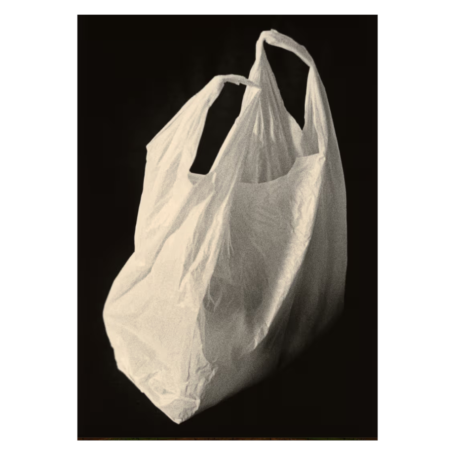הפוסטר Plastic Bag של הצלם הפיני Mikael Siirilä, מתוך האוסף של המותג הדני PAPER COLLECTIVE, שייך לסדרה שמעמיקה בקומפוזיציות כהות ודומיננטיות. צורה פשוטה מגיחה מתוך רקע שחור, עטופה במרקמים עשירים ובמעברים עדינים של גוון, שנוצרים בטכניקת ג’לטין כסף.