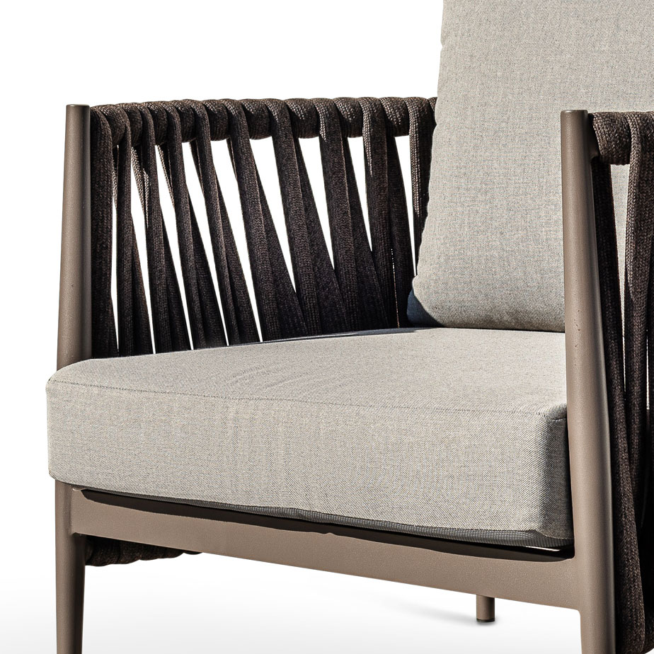 כורסא מרווחת בעיצוב קליל, בקווים מודרניים ואלגנטיים. הכורסא עמידה לתנאי חוץ ואינה דורשת טיפול ותחזוקה, הריהוט מאלומיניום והריפוד עשוי בד אקרילי. בנוסף לכורסא קיימת גם ספה ושולחן קפה תואם.