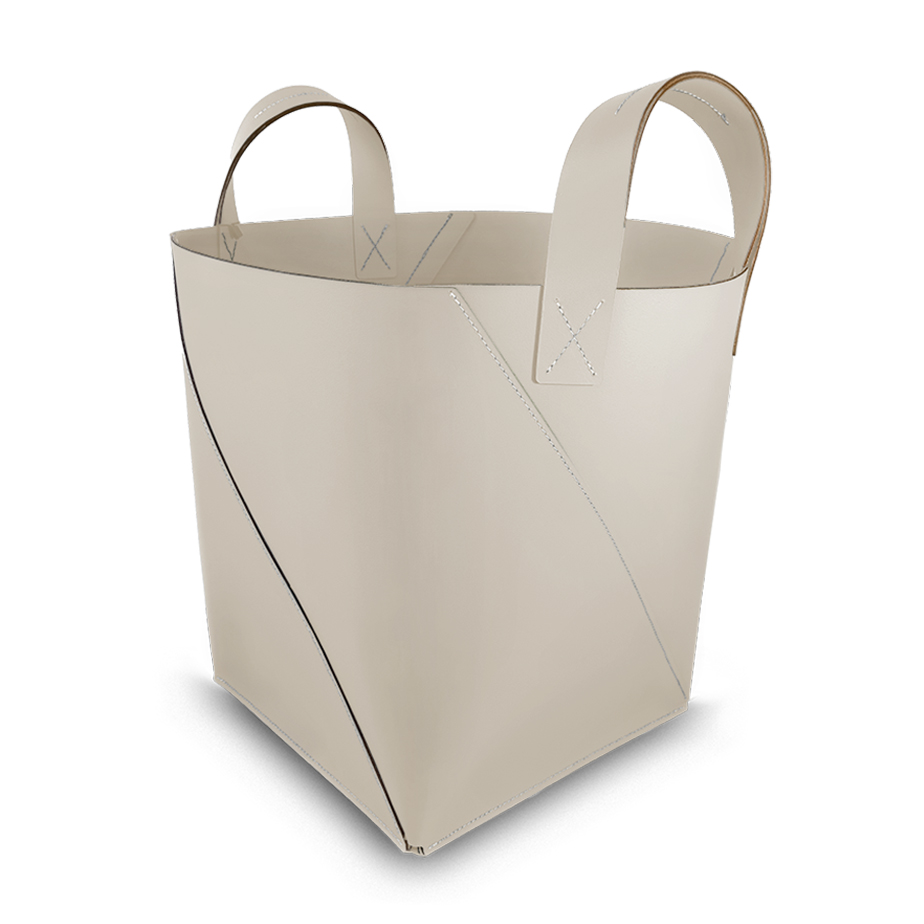סל אחסון מסדרת Ruca של המותג VACAVALIENTE. מיוצר בעבודת יד בספרד מעור ממוחזר משאריות ותוצרי לוואי של תעשיית העור. עמיד, מרווח ורב-תכליתי, לסידור וארגון הבית או המשרד.