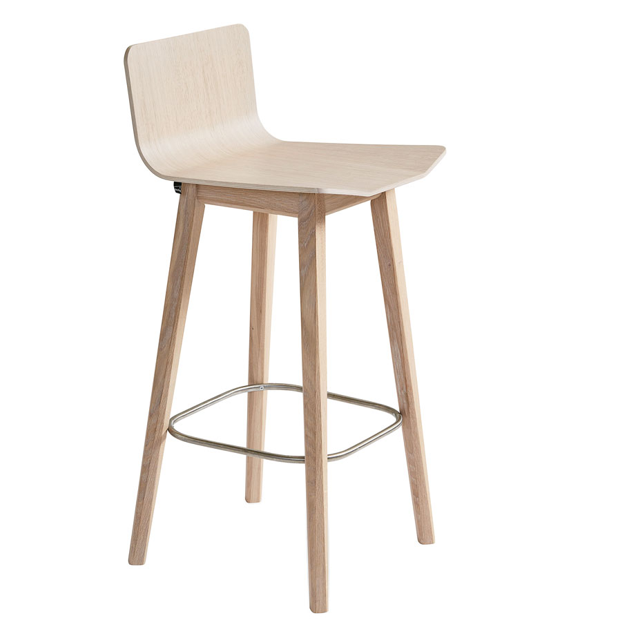 כסא בר מעץ אלון, של המותג הדני SKOVBY . משלב מושב דק ואלגנטי ובסיס עץ יציב ועמיד עם מסגרת מתכת תחתונה דקה להנחת הרגליים, נותנים לו מראה מוקפד והאלגנטי.