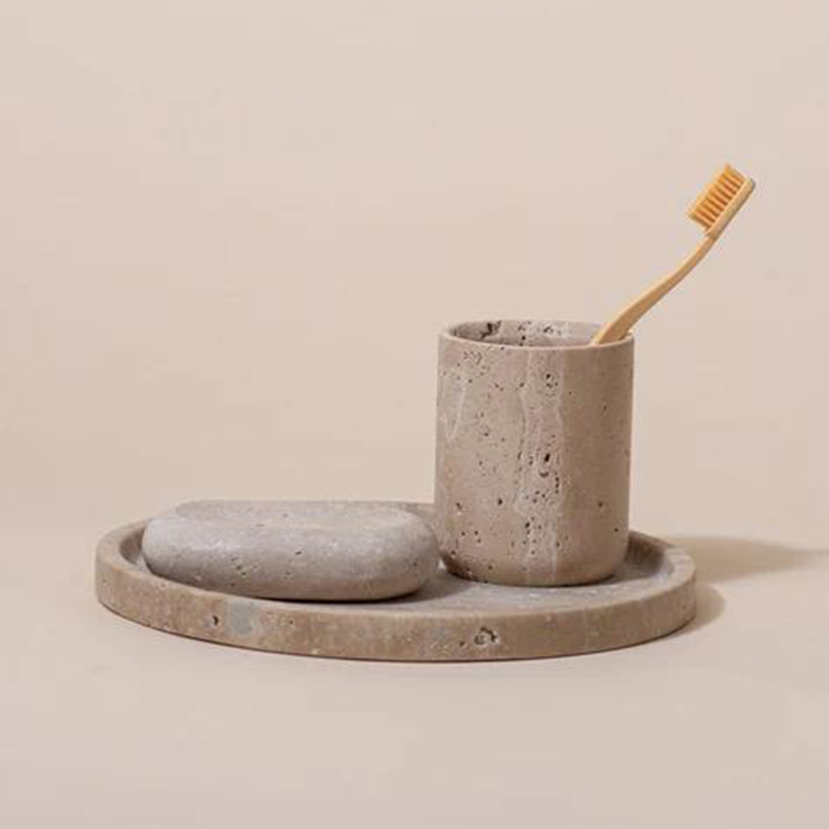 מגש עגול של המותג ההולנדי STONED, עשוי משיש טרוורטין ומעובד בעבודת יד. העיצוב הנקי מדגיש את היופי והאלגנטיות של החומר, והוא מושלם כמעמד למוצרי קוסמטיקה בחדר הרחצה, לאביזרי מטבח, לנרות ופריטי נוי או לכל שימוש שתבחרו. מאחר ומדובר באבן טבעית, כל פריט הוא ייחודי ועשויים להיות הבדלים בגוונים ובגימור.